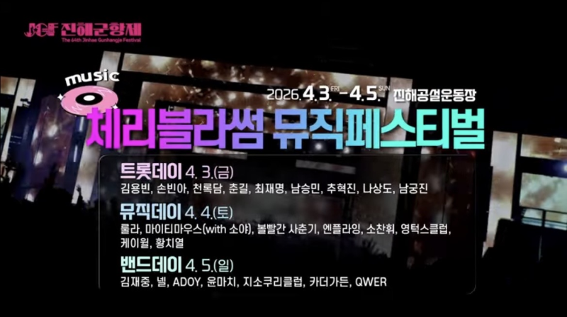 이번 ‘진해 군항제’에서는 4월 3일(금)부터 '체리블라썸 뮤직페스티벌'이 열린다.