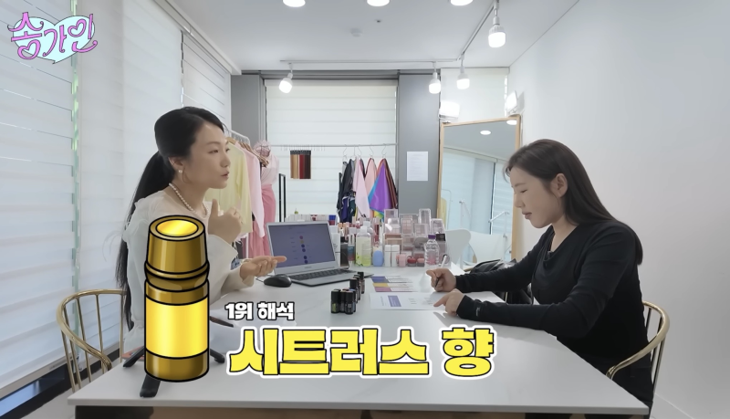 전문가는 “늘 무대에 올라가시고 일정이 빡빡하다 보니 가인 님은 지칠 수밖에 없다. 때문에 늘 이 향을 선택하는 거다. 시트러스향은 쉼이 필요할 때 가장 좋은 향으로 사람들이 많이 선택하는 향이다”라고 말했다.