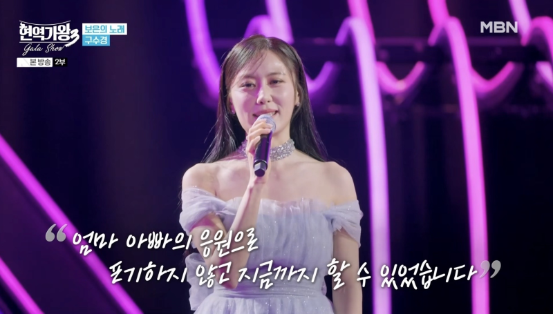 한 소절 한 소절 진심을 꾹꾹 눌러 담아 노래를 마친 구수경은 “엄마, 아빠의 응원이 있었기에 포기하지 않고 지금까지 올 수 있었다”며, “앞으로도 지켜봐 달라. 열심히 하겠다”는 다짐과 함께 끝내 참아왔던 “사랑한다”는 말을 전하며 객석을 감동으로 물들였다.