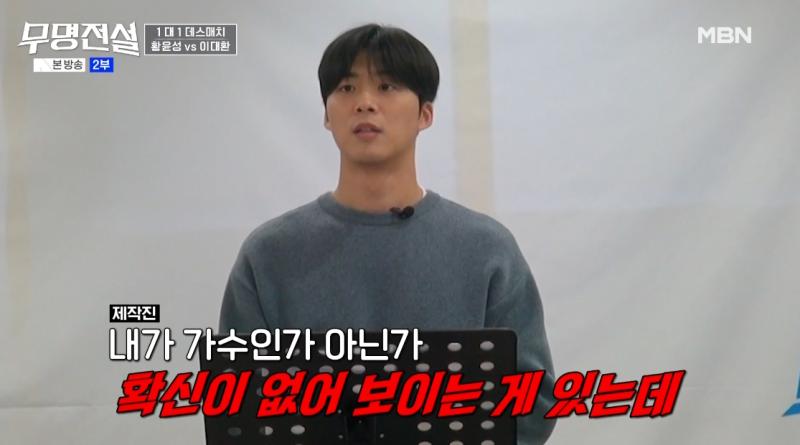 무명전설에 출전중인 이대환이 중학교 시절 학폭에 시달렸다는 것을 밝혀 충격을 주었다/사진=MBN 무명전설