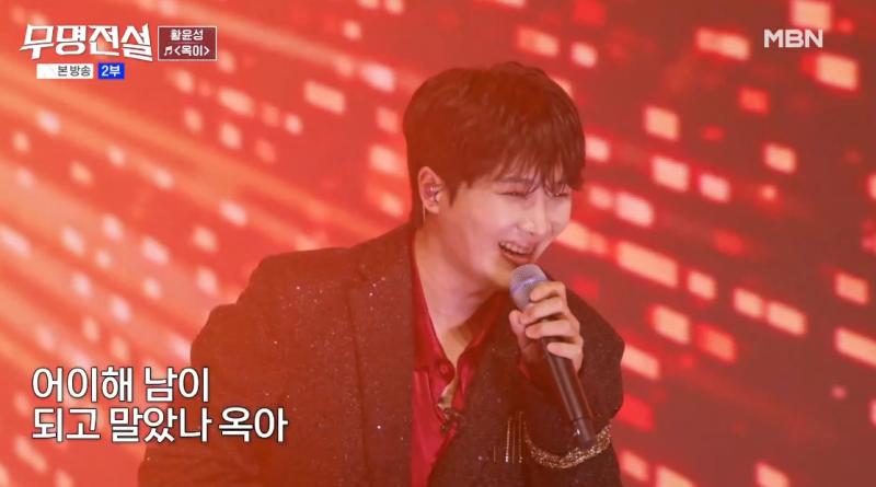 무명전설 본선2차전 1대1 데스매치에서 황윤성이 '옥이'를 열창하고 있다/ 사진=MBN 무명전설