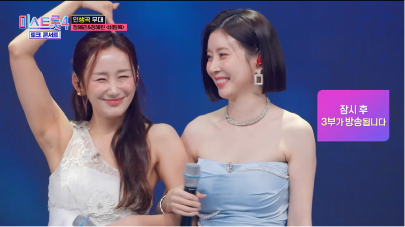 가수 정혜린이 동료 장혜리와 함께 미스트롯4 토크콘서트에 출연 가창력을 뽐냈다/ 사진=TV조선