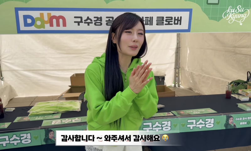 구수경은 “팬 부스도 생겼다”며 행복한 미소를 보이며 팬 부스로 향했다. 그 곳에서 한명 한명에게 직접 악수도 하고 감사하다는 말을 전했으며 추운데 고생한다며 미안한 마음도 내비쳤다.