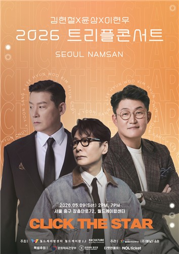 가수 김현철, 윤상, 이현우가 내달 9일 ‘클릭 더 스타 2026 트리플 콘서트’를 통해 대중 앞에 선다.