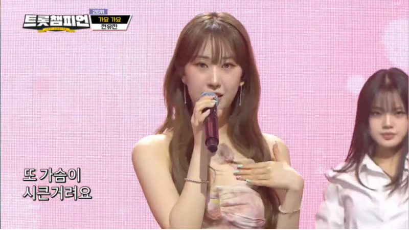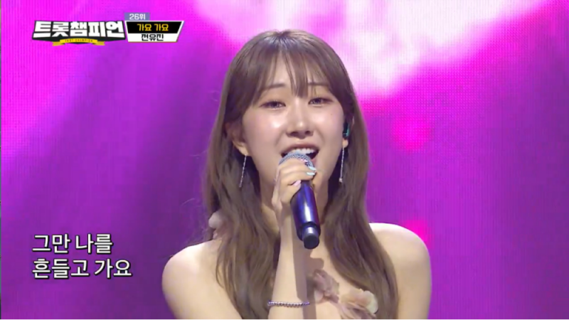 전유진은 지난 9일 방송된 ‘트롯챔피언’에서 지난달 26일 발매한 신곡 ‘가요 가요’무대를 최초 공개했다.