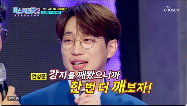 미스터트롯2 경연에서 경연에서 안성훈은 1:1 대결을 할 때마다 강자를 선택 '쌈닭'이란 별명이 생겼다/사진=TV조선