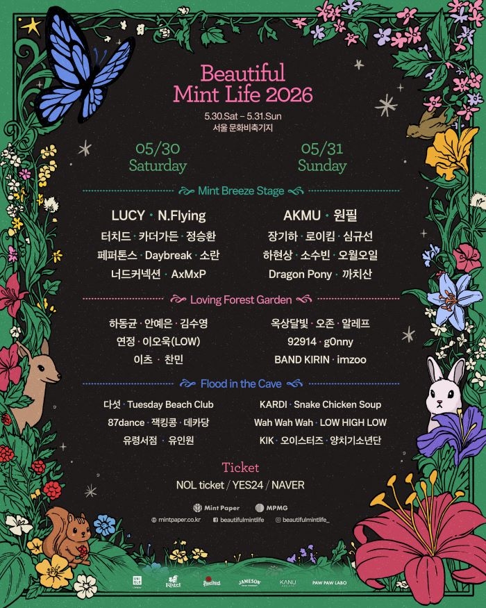 봄날의 끝자락을 음악으로 수놓을 국내 대표 야외 음악 축제 ‘뷰티풀 민트 라이프 2026(Beautiful Mint Life·이하 뷰민라)’이 축제의 주인공들을 모두 확정 지으며 본격적인 설렘의 시작을 알렸다.